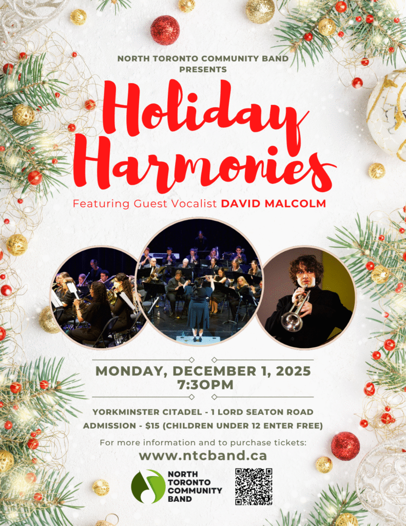 The North Toronto Community Band is thrilled to welcome you to our annual Holiday Concert, our most festive performance of the year! This season is especially meaningful as we celebrate our first holiday program under the direction of our new conductor Tony Nguyen, whose fresh energy and vision have brought an exciting spark to the ensemble.